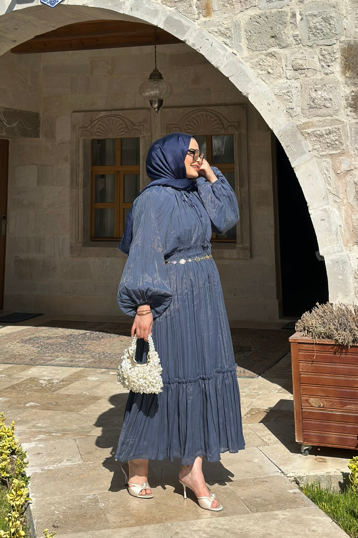 Fırfır Detay Bağlama yakaya sahiptir balon kollu ve kol bilegi lastiklidir içi astarlı iç göstermez.