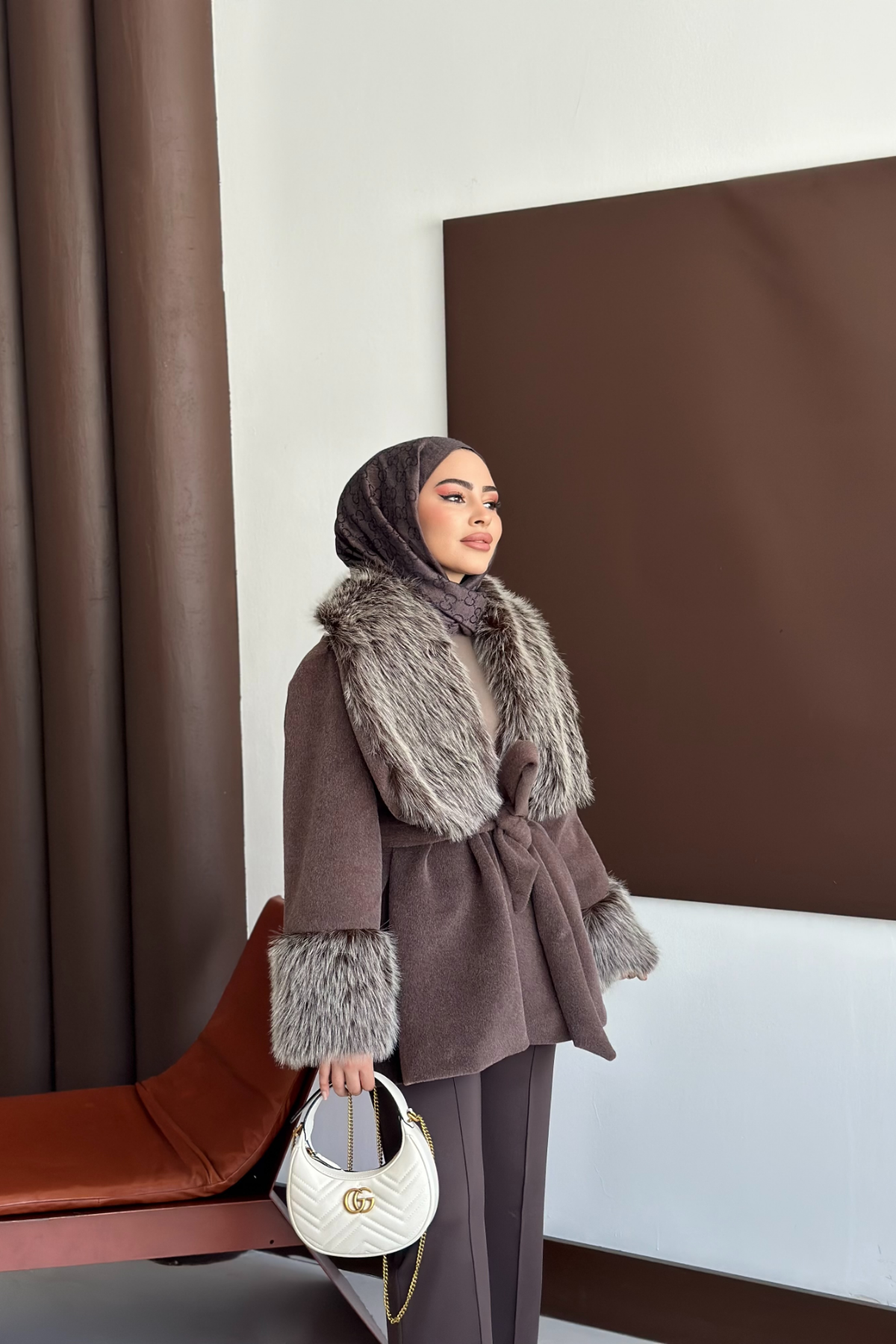 Kürk Yakalı Goldfox Kaban Kahve (8593)